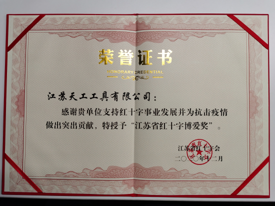 為了表彰今年以來在共同抗擊新冠疫情中作出重要貢獻的企業(yè),近日,江蘇省紅十字會授予江蘇天工工具有限公司江蘇省紅...